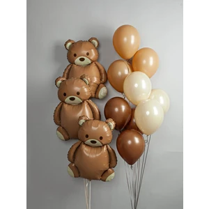 Состав: Фигура фольгированная "Медведь" - 3шт, Шары латексные 30см без рисунка - 9шт, Шары упакованы в транспортировочные пакеты.