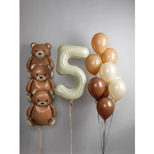 Состав: Фольгированная цифра 102 см - 1шт, Фигура фольгированная "Медведь" - 3шт, Шары латексные 30см без рисунка - 9шт, Шары упакованы в транспортировочные пакеты.