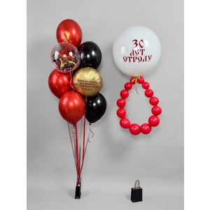 Состав: Шар Bubble 30см c игрушкой - 1шт, Шары латексные 30см без рисунка - 4шт, Шар в шаре 30см - 4шт, Фольгированный круг 45см с надписью - 1шт, Шар латексный 60см с надписью - 1шт, Шары упакованы в транспортировочные пакеты.